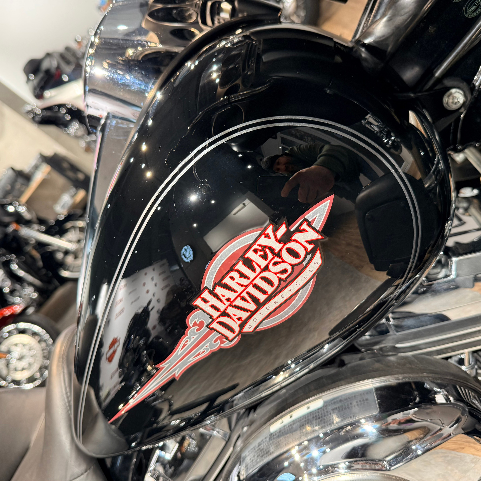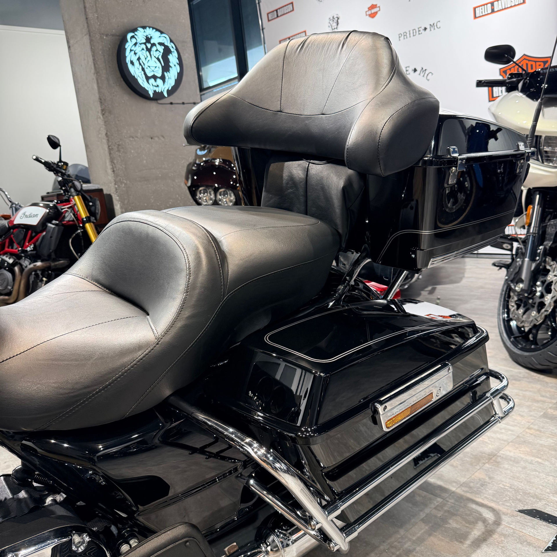 — хорошая комплектация, в черном цвете с большим количеством хрома — дополнительные фары, электронный газ, круиз-контроль, ветрозащитные валенки в цвете мотоцикла, полностью в стоке, держатель номера в правильном месте — без проблем встанет на учет;