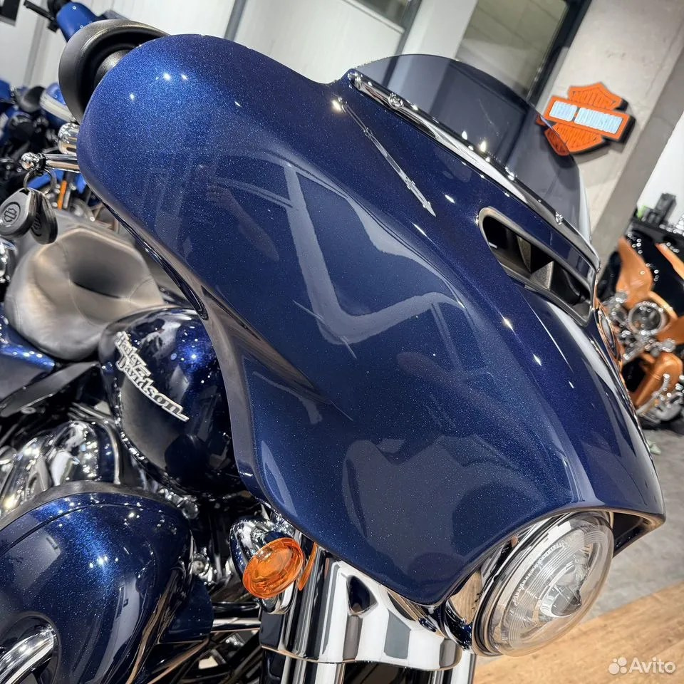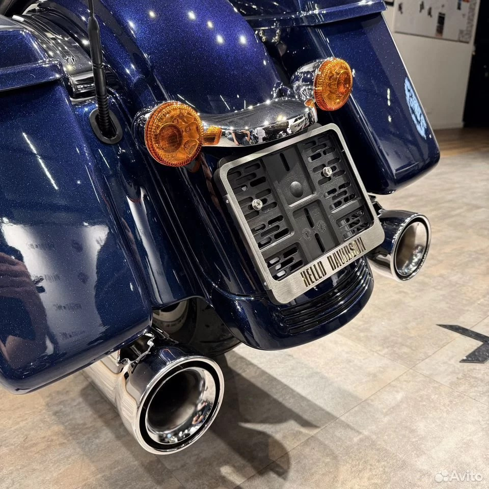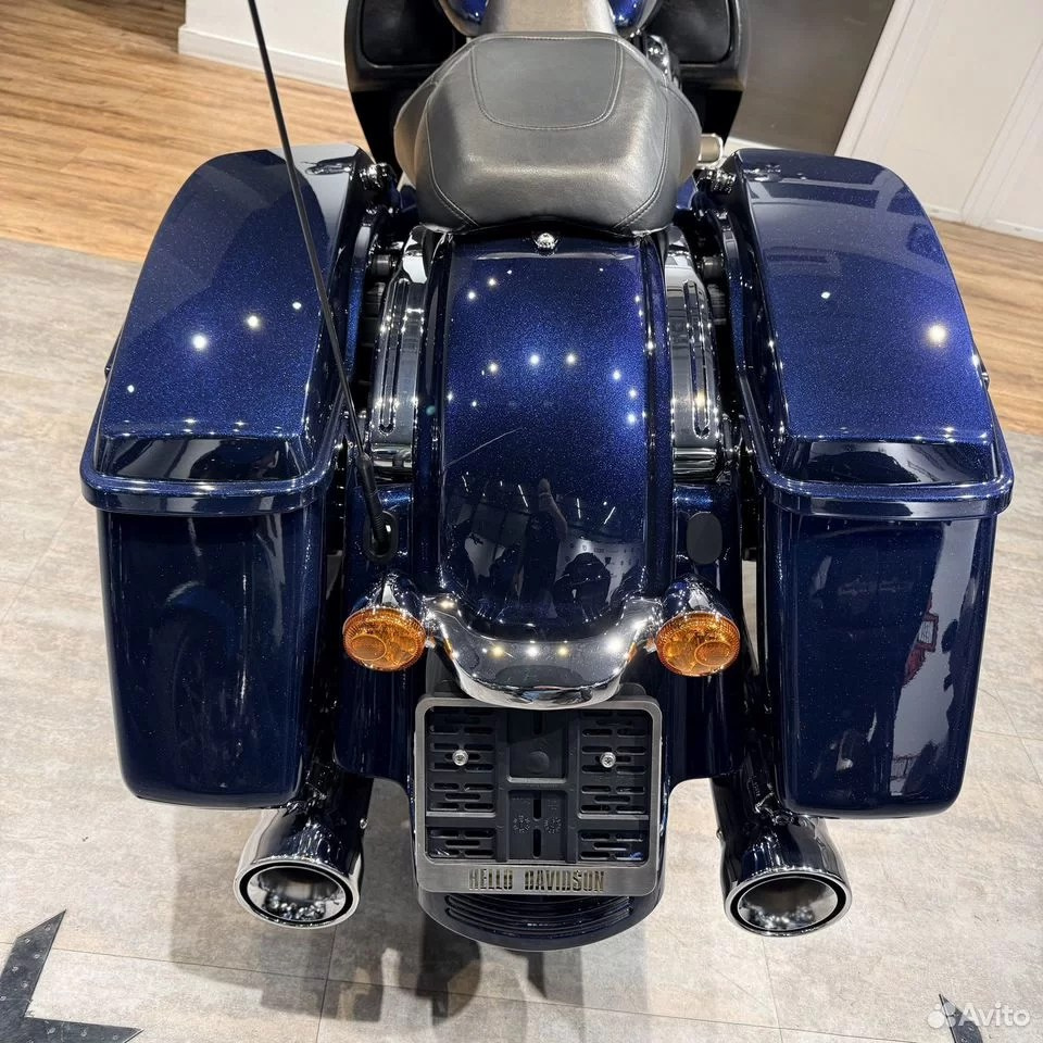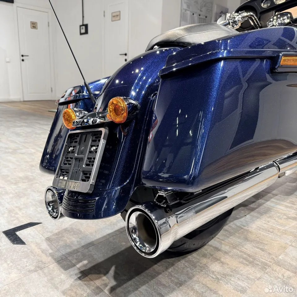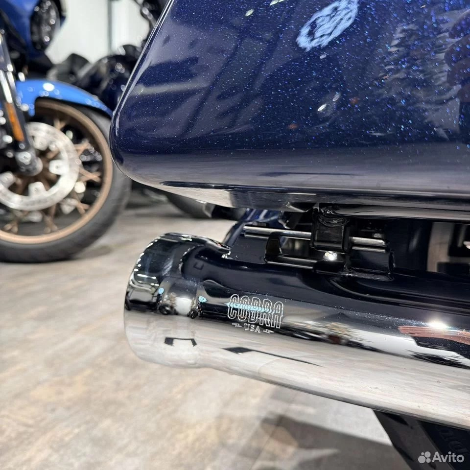 — у нас очень приятный дилерский мотоцикл с подтвержденным пробегом, в дорогом перламутровом цвете Осеаn Вluе с большим количеством хрома, с интересными опциями — 1) один из лучших глушителей на туринги — СОВRА NЕIGНВОR НАТЕRS™ — на мой взгляд, красивейший выхлоп с классным рокочущим звуком, от которого не болит голова через 15 минут; 2) ветрозащитные накладки (валенки), окрашенные в цвет мотоцикла (!!!) 3) ряд маленьких, но важных деталей для общего восприятия — хромированные пульты / машинки / рычаги (это дорого) + защитные накладки от тепла заднего цилиндра + хорошая светодиодная головная фара (в общем, смотрите фото — а лучше приезжайте прямо к нам, мы работаем каждый день с 11 до 21);