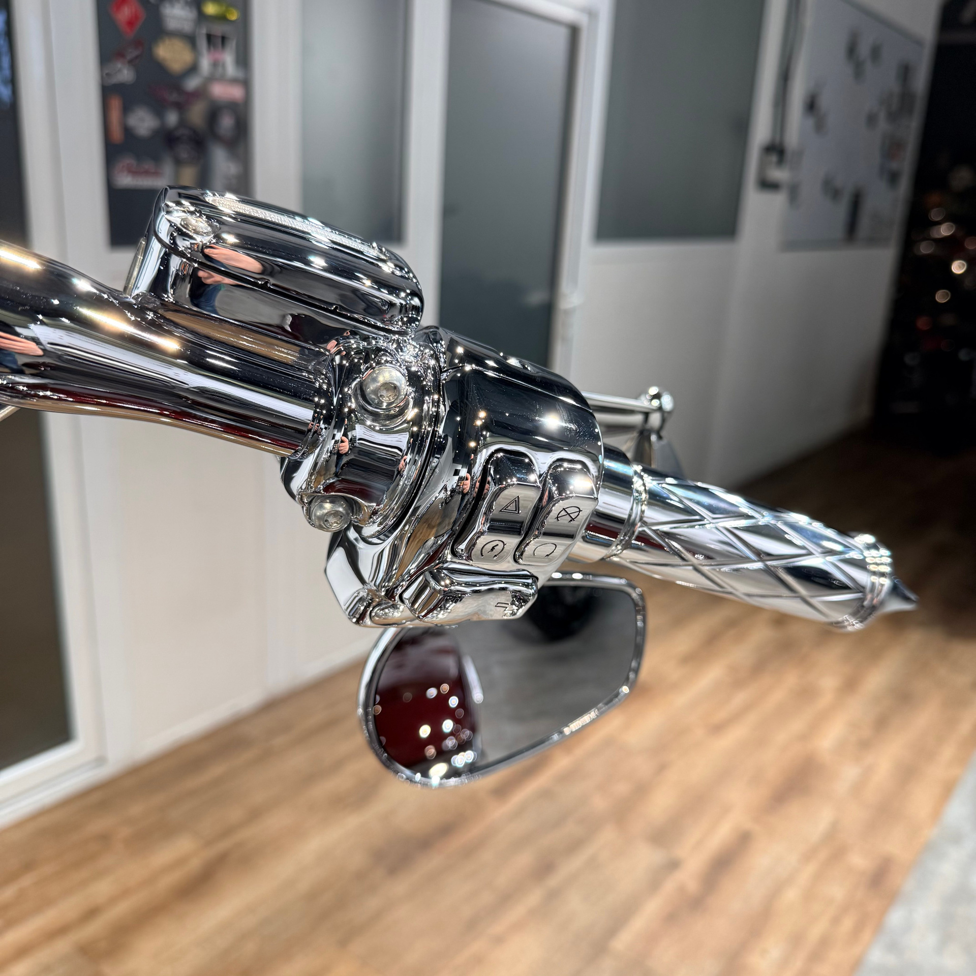 - Крайне редкаяи красивая версия в максимальном хроме с дорогими опциями — потрясающе харизматичный Роад Кинг (руль Fасtоry 47, полная коллекция Аrlеn Nеss, приятные глушители DС& СS, светодиодная оптика и многое другое) — выглядит просто великолепно — шикарное состояние «нового мотоцикла» (смотрите подробные фото — их больше, чем можно разместить, можем прислать по запросу)
