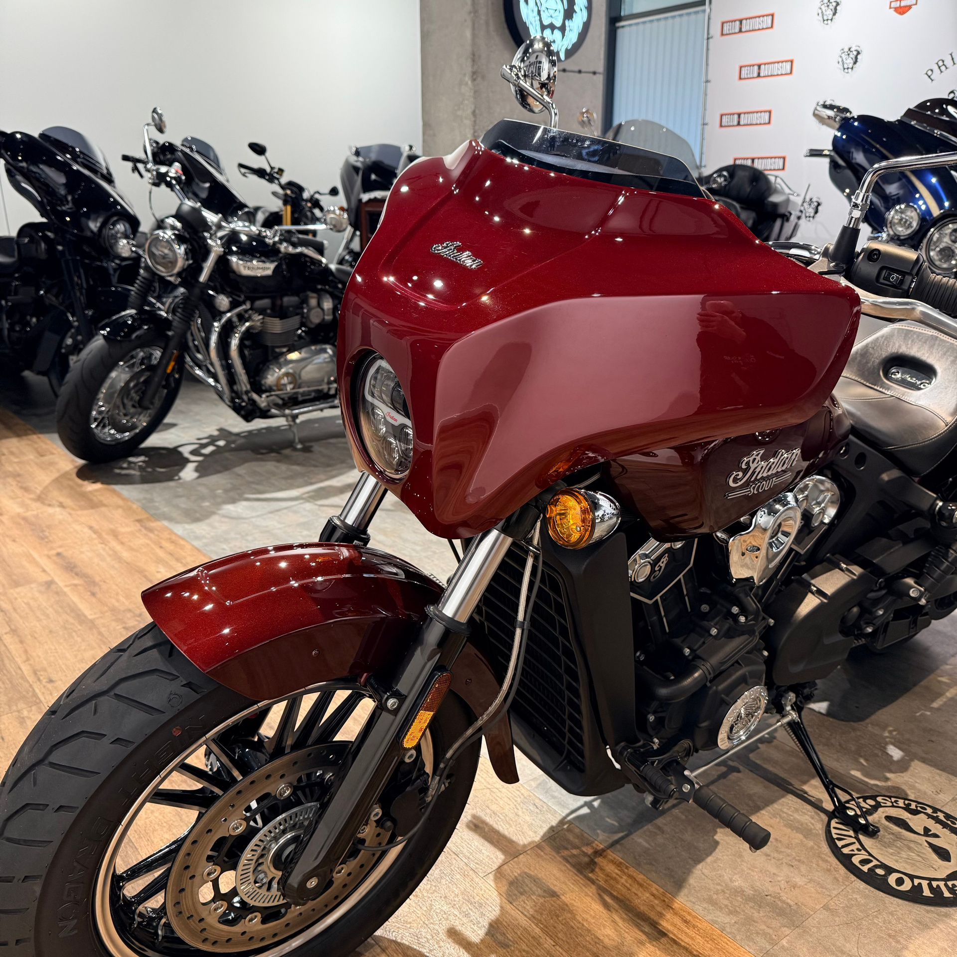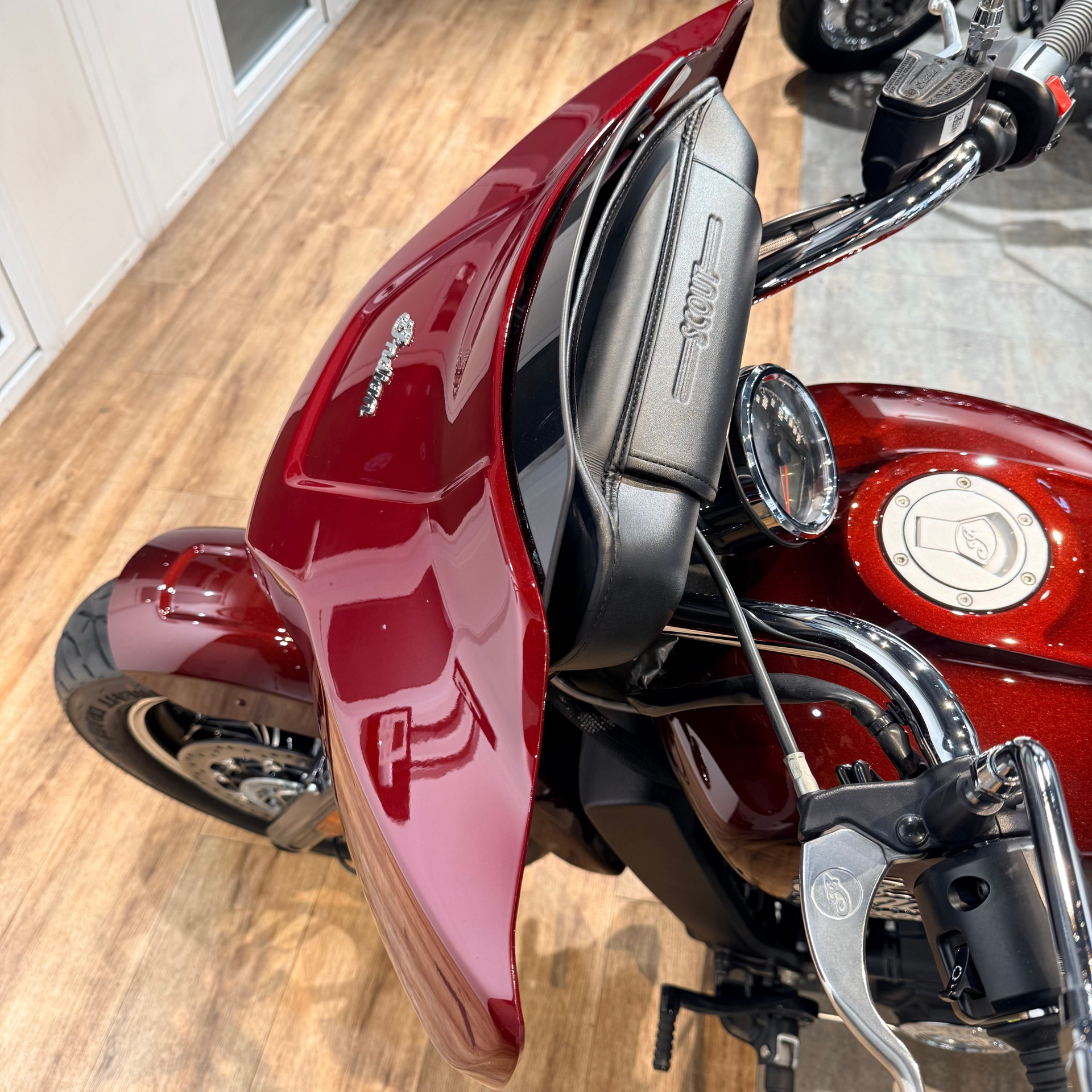 - Очень красивая версия Тоuring, отличается от обычных Скаутов установленным передним бэтвингом и боковыми кожаными кофрами, дополнительно установлены оригинальные опции: светодиодная фара и внутренний кармашек внутри самого бэтвинга — шикарное состояние, полностью в стоке — без проблем встанет на учет;