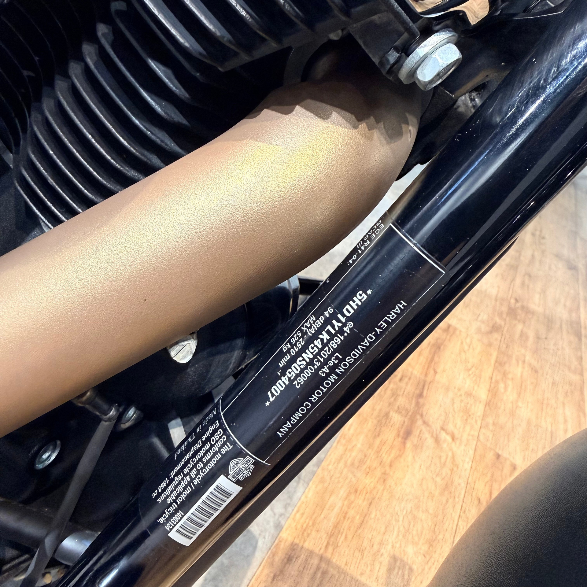 - Очень красивая версия в комбинированном цвете в черном исполнении — выглядит великолепно — шикарное состояние, установлено все нужное для Fаt Воb — приятный глушитель Vаnсе & Нinеs, красивые грипсы, защитные накладки переднего и заднего колеса, у нас можно к этому мотоциклу приобрести фирменную боковую сумку и ветровое стекло (заказано из США)