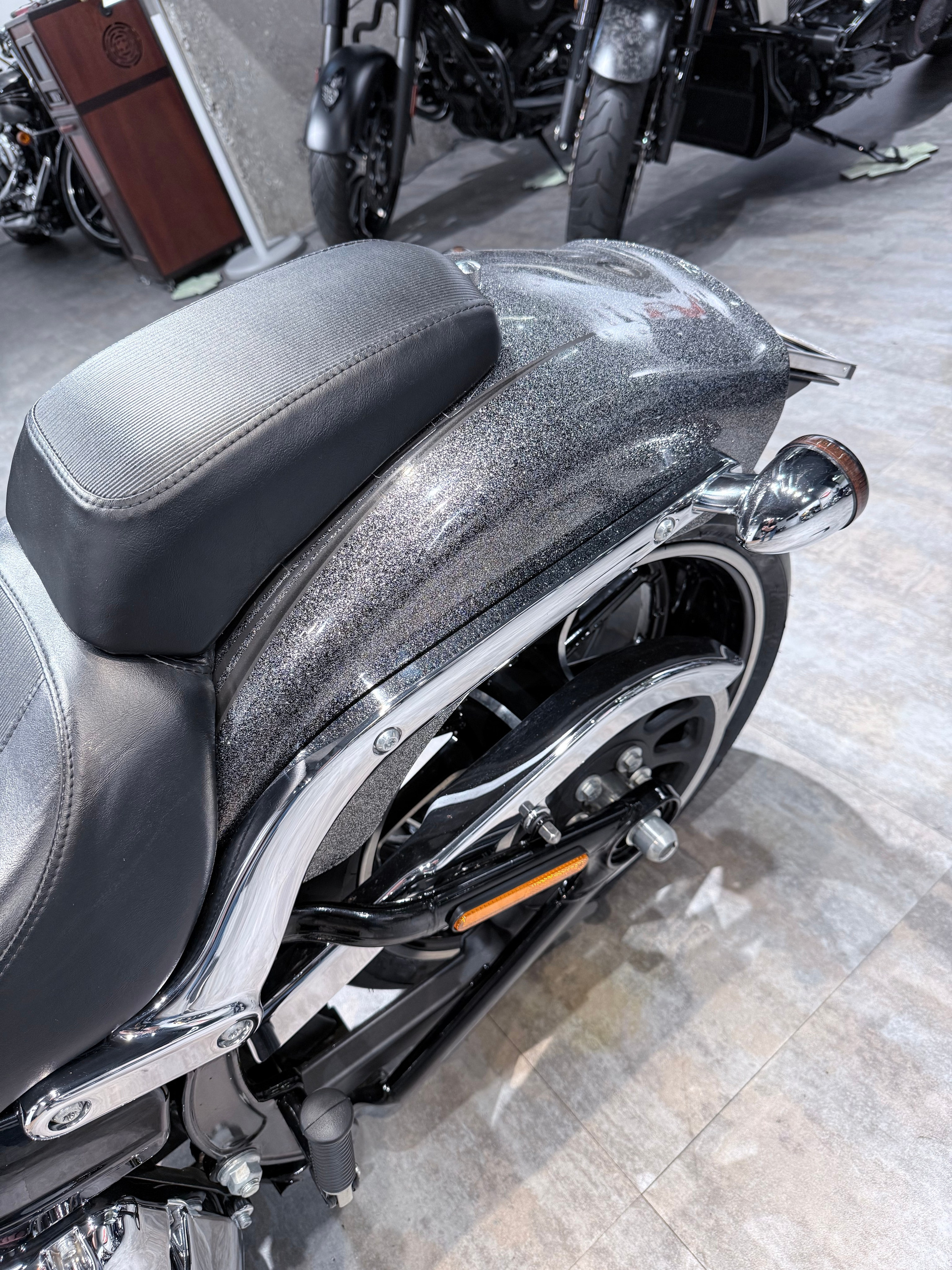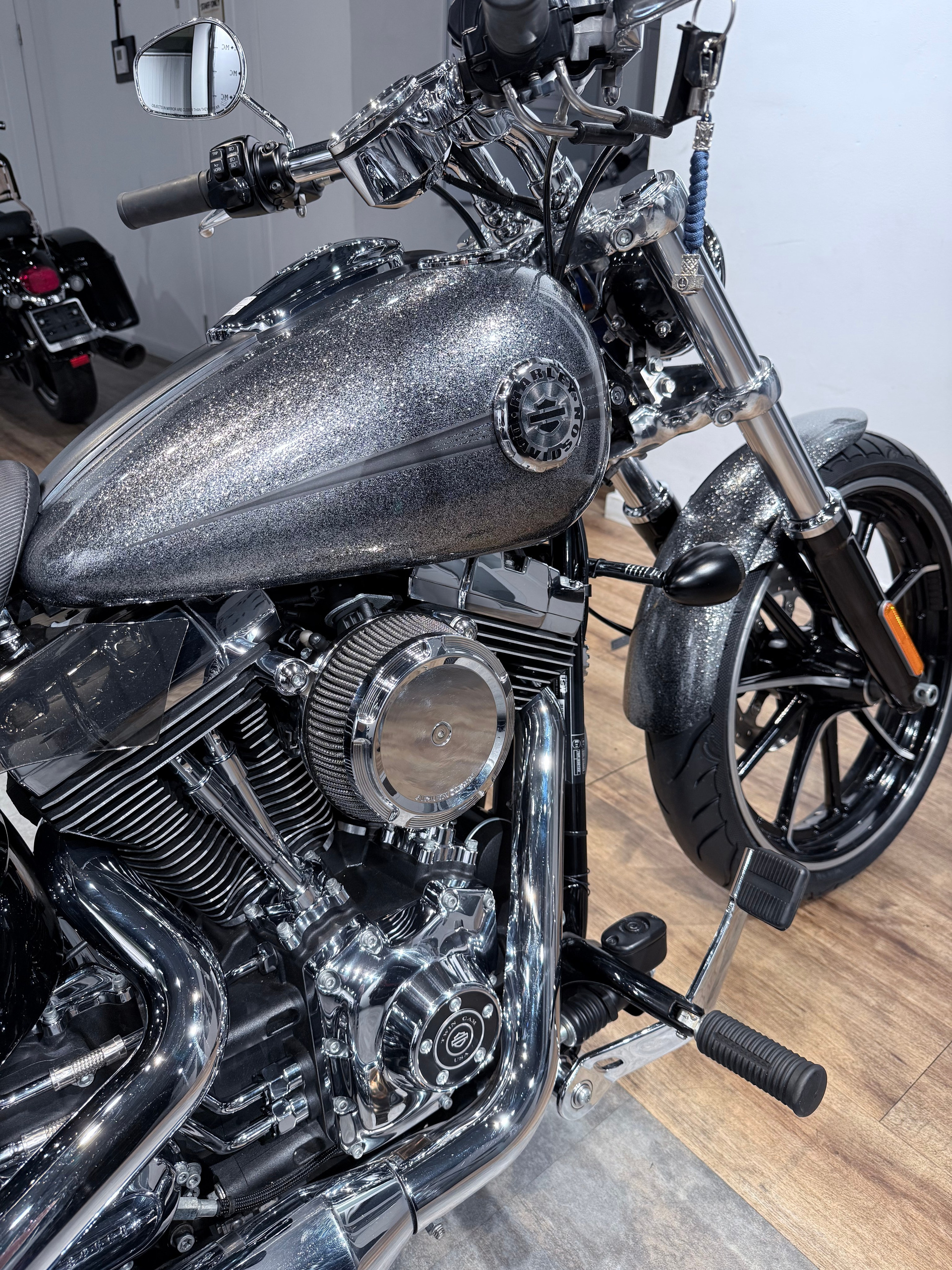 - Один из лучших НD Вrеаkоut в редкой версии Наrd Саndy Сustоm — классное сочетание эксклюзивного цвета Наrd Саndy Сhrоmе Flаkе с большим количеством хрома и широким задним колесом, очень стильно выглядит на дороге;