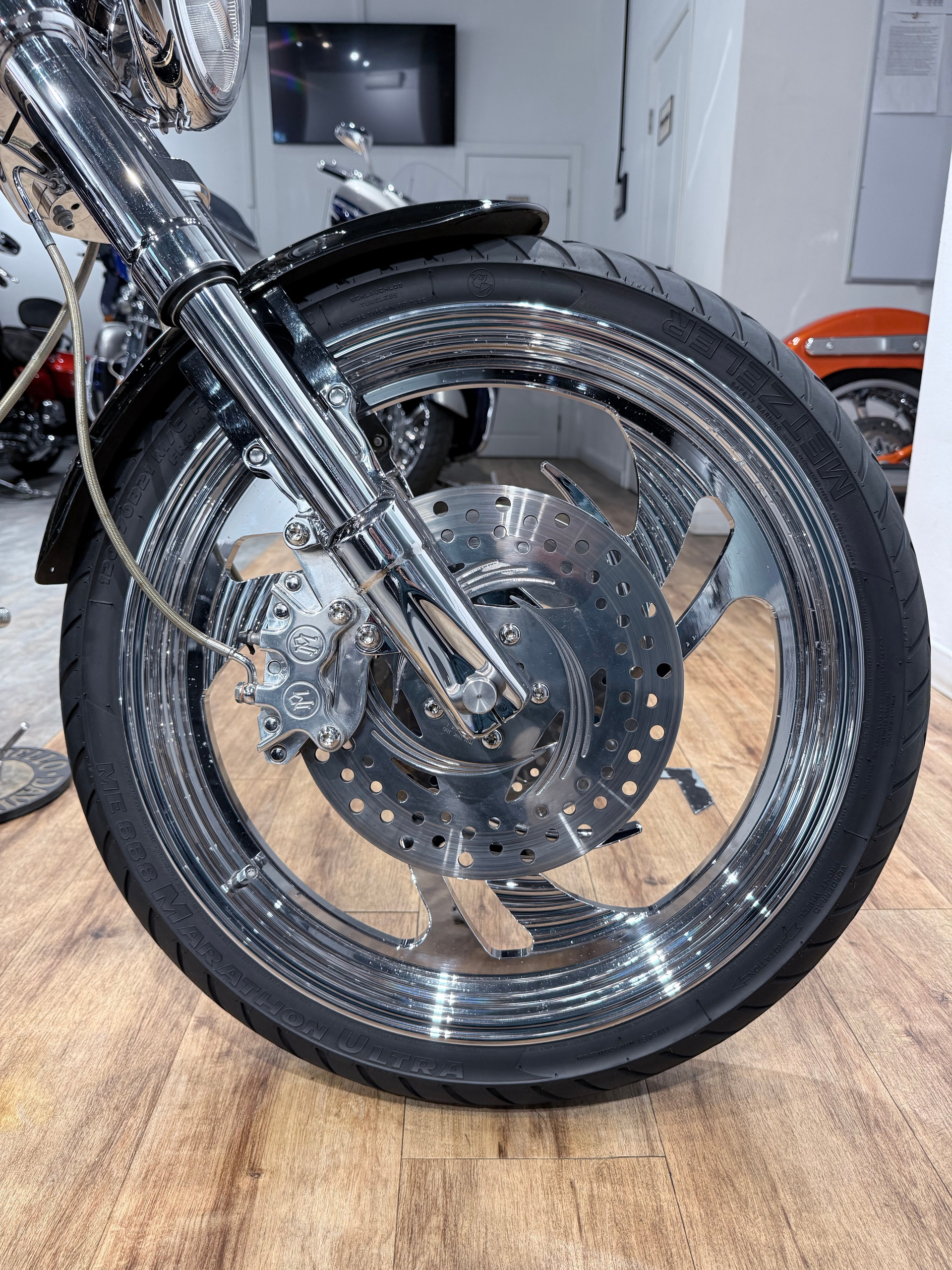 — эксклюзивная версия Вlасk Оrthоdох полностью в дорогой защитной пленке и в очень хорошей комплектации — все элементы в хроме: хромированные колеса Аrlеn Nеss, полностью хромированная передняя вилка, выхлопная система Аrlеn Nеss, тормоза Реrfоrmаnсе Масhinе, передняя вилка Маrzоссhi, кастомные подножки и лапки, очень дорогая эксклюзивная боковая опора, увеличенные тормозные диски, светодиодная фара НD LЕD, светодиодные поворотники НD LЕD спереди и сзади, и многое другое;