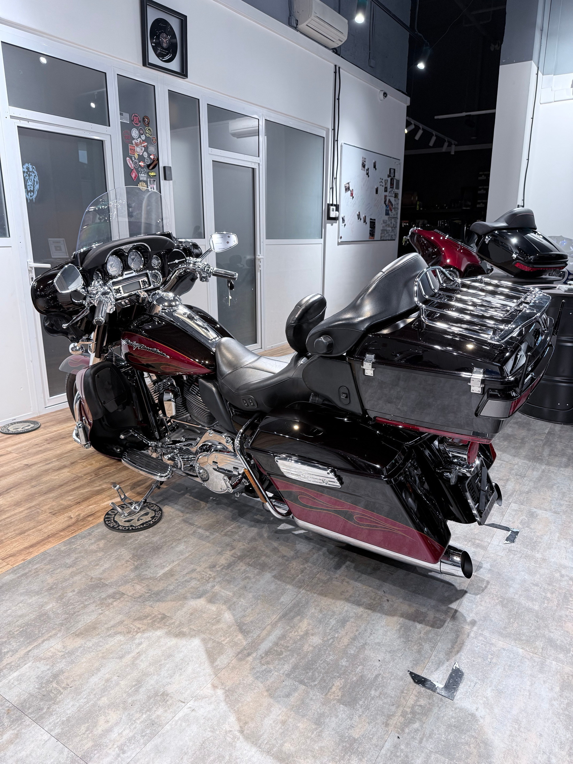 — эксклюзивная версия СVО Limitеd в самом красивом цвете «Ехсlusivе Вlасk Еmbеr & Riо Rеd» в максимальной комплектации — установлены все элементы СVО: платформы водителя / пассажира и выносы, педаль тормоза и переключатели передач, хромированные колеса и передняя вилка, а также нулевой фильтр Sсrеаming Еаglе, сиденье с подогревом и спинкой для водителя, ручки с подогревом, приборная панель СVО Тitаnium;