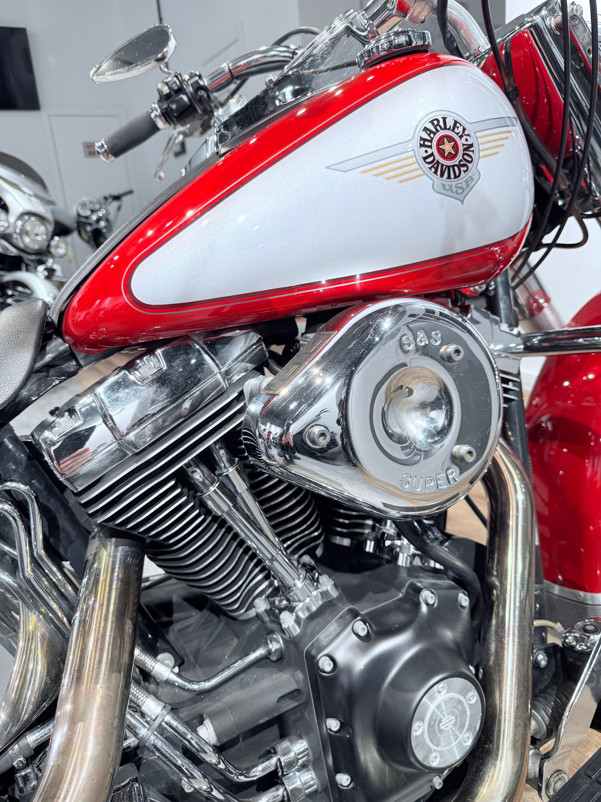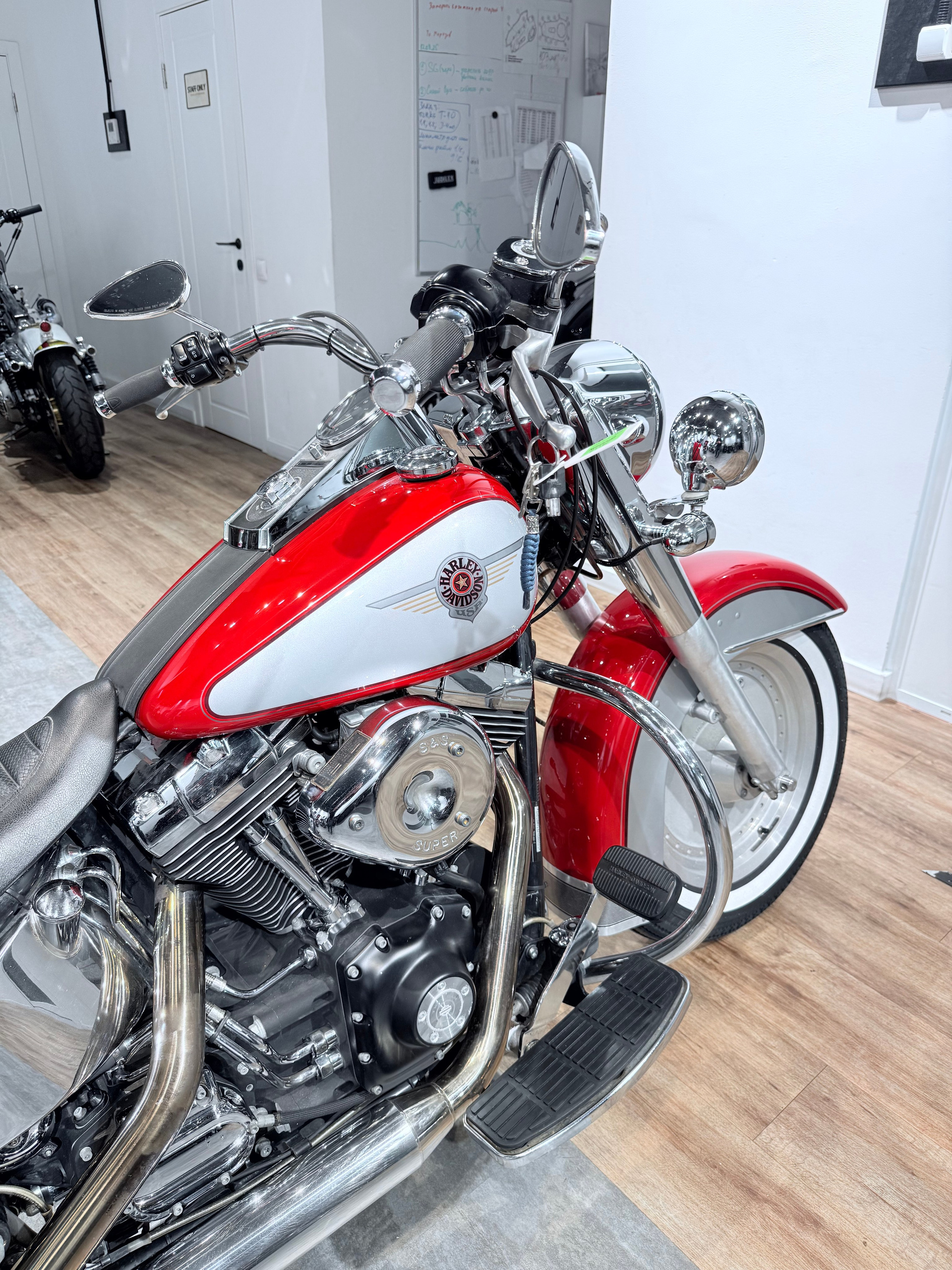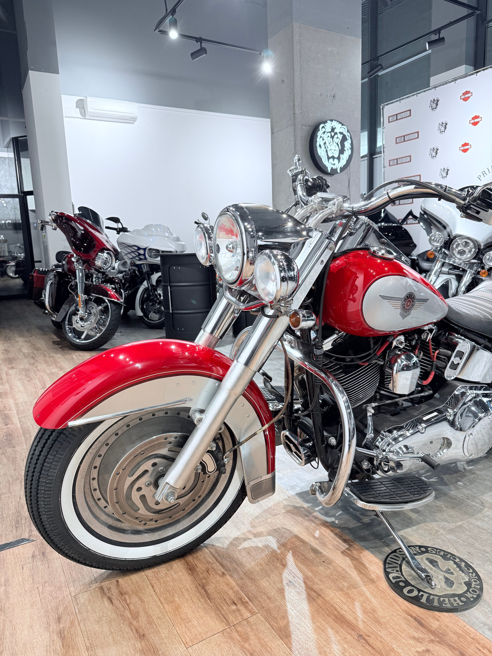 — в тюнинге от компании Sundаnсе (карбюратор + глушитель), на нулевом фильтре S& S, на классических колесах whitе-wаll в ретро-стиле, с дополнительными фарами, с удобным красивым сиденьем КаndН — выглядит очень достойно, звучит так, как новые харлеи не могут, вызывает восхищение у всех вокруг — при этом очень комфортный и удобный мотоцикл на каждый день (по эргономике все штатно), как и все Fаt Воy отлично рулится и пролезает в любое междурядье;