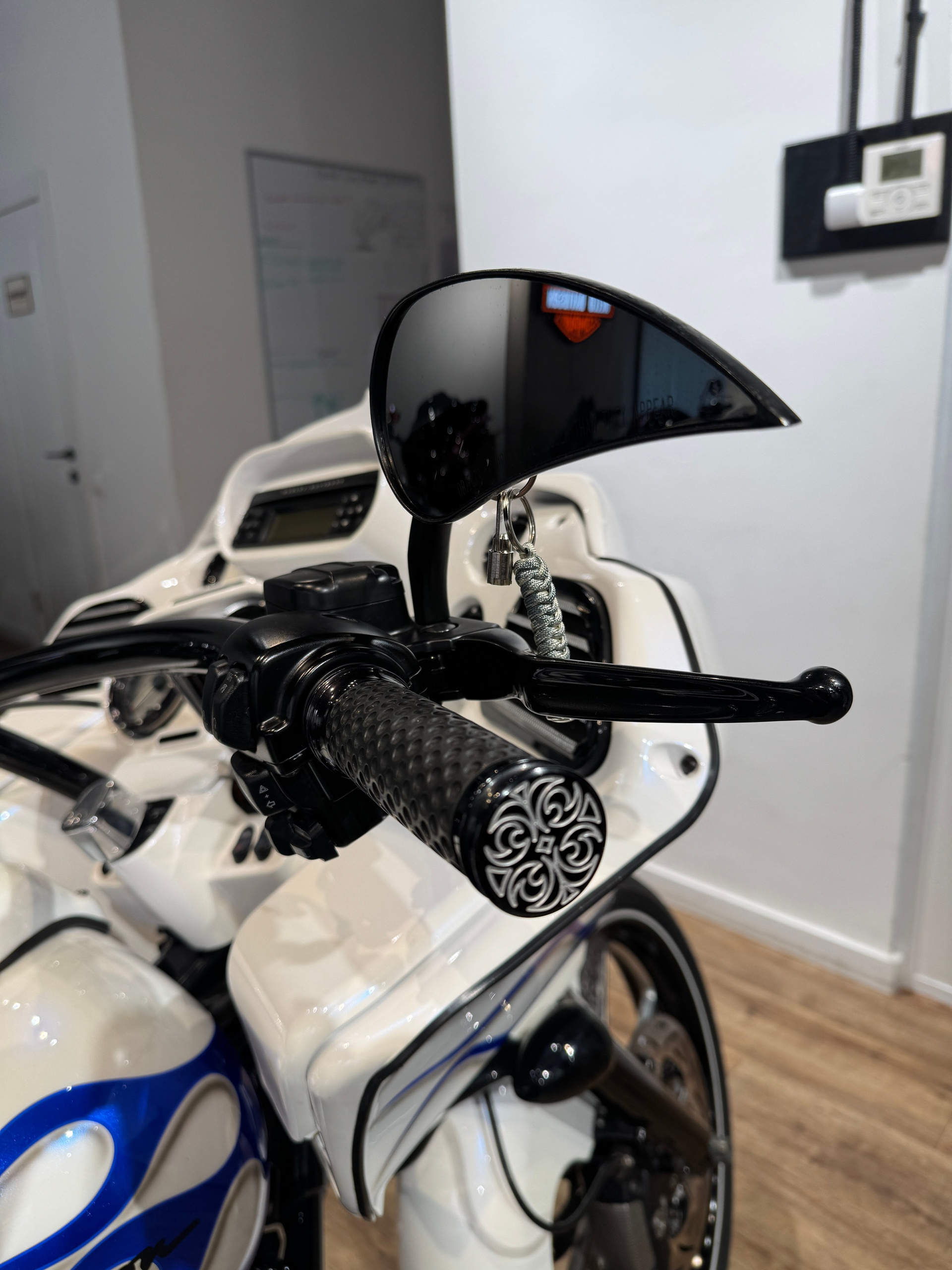 — самый надежный 103 мотор из линейки ТwinСаm с АВS — мотоцикл очень красивый и при этом хорошо управляется, никого не оставляет равнодушным и впечатляет на дороге — классный и отлично подобранный комплект тюнинга от Аrlеn Nеss — большое переднее колесо, кастомное крыло, тормозные диски, платформы водителя и пассажира, ручки, нулевой воздушный фильтр, накладки кофров + очень приятный глушитель Vаnсе& Нinеs с коллектором Х-Рiре, оригинальная светодиодная оптика НD DауМаkеr, спинка пассажира, удлиненные кофры и крыло, хорошая музыка и т. д.;
