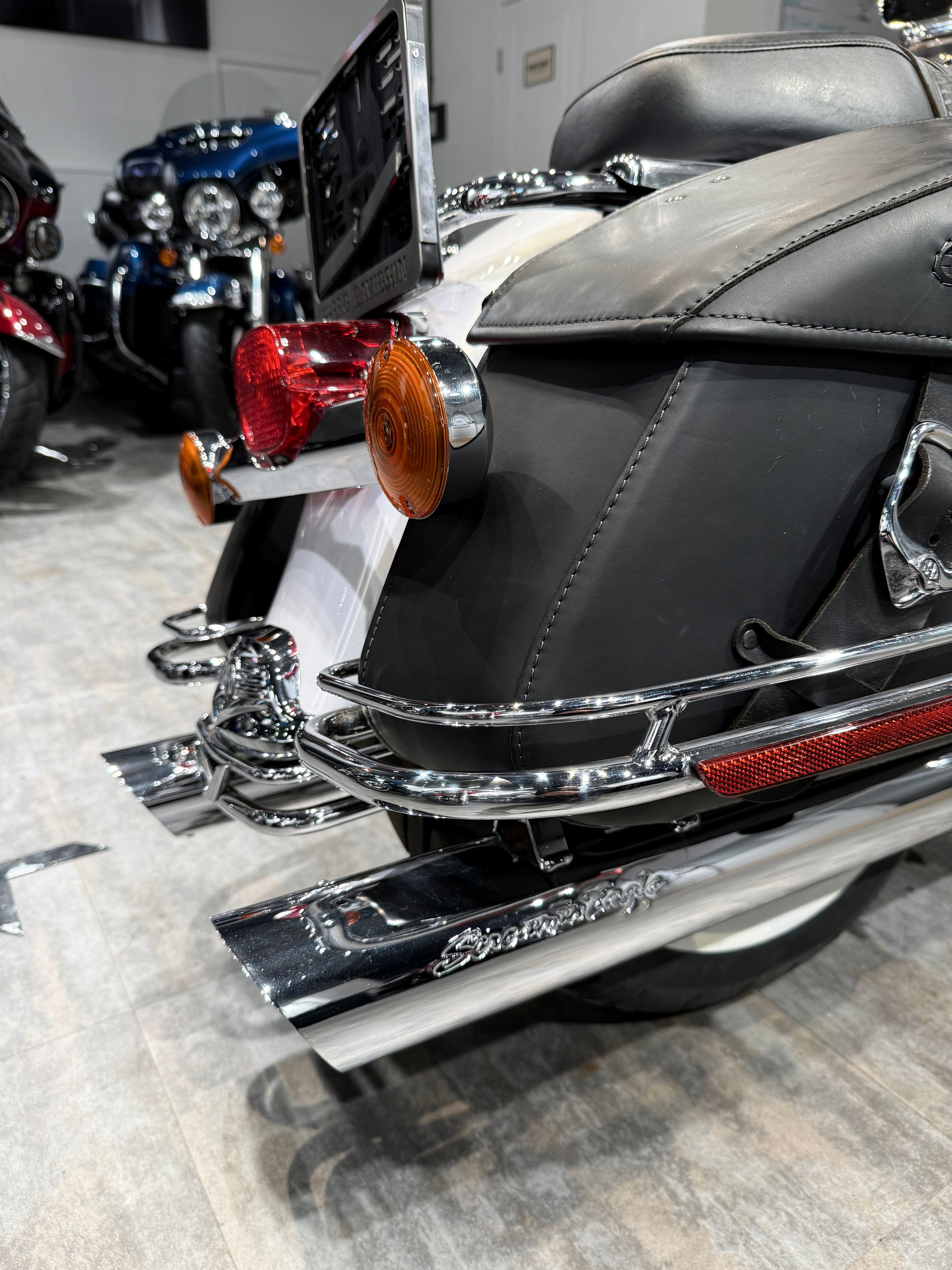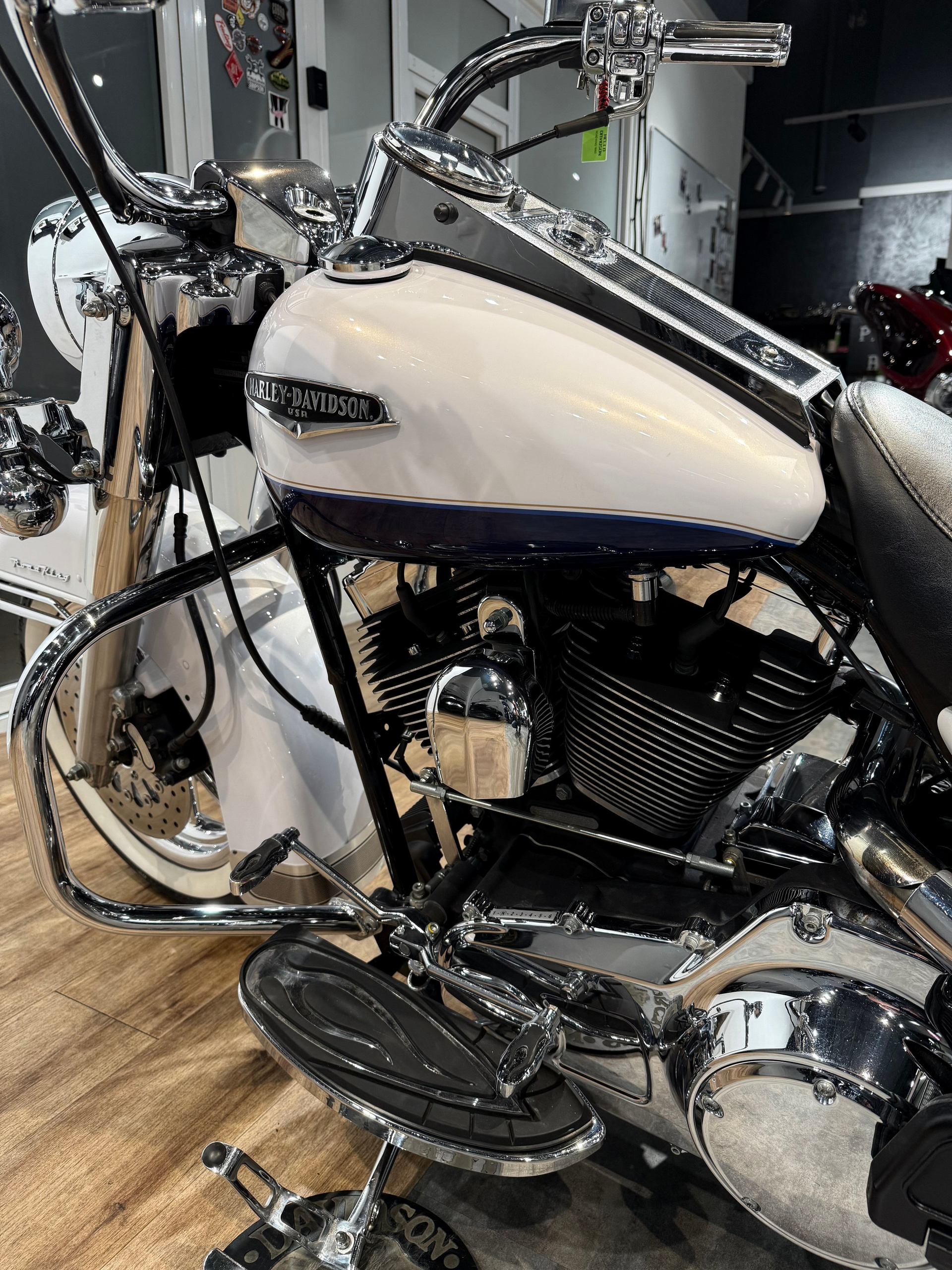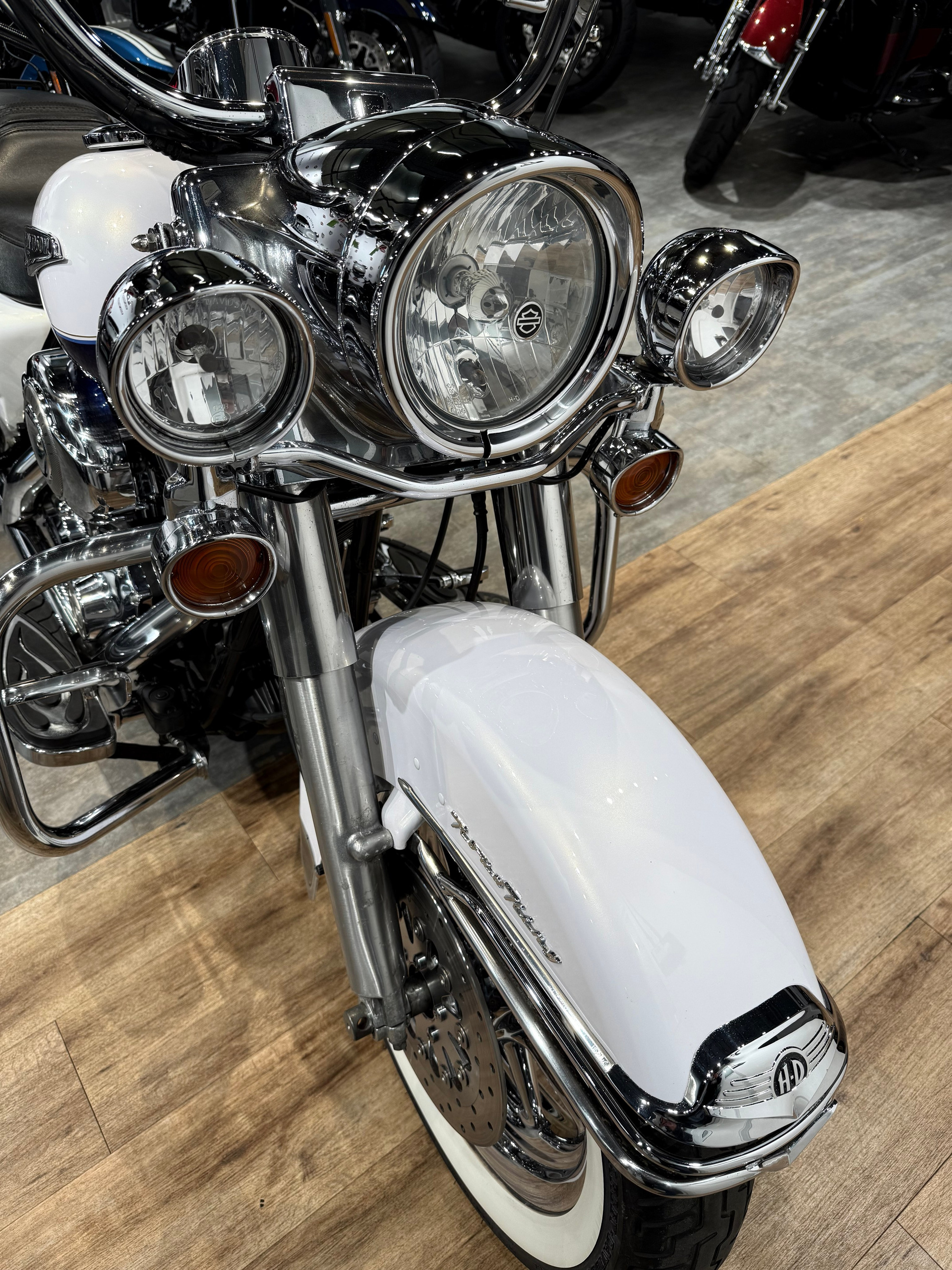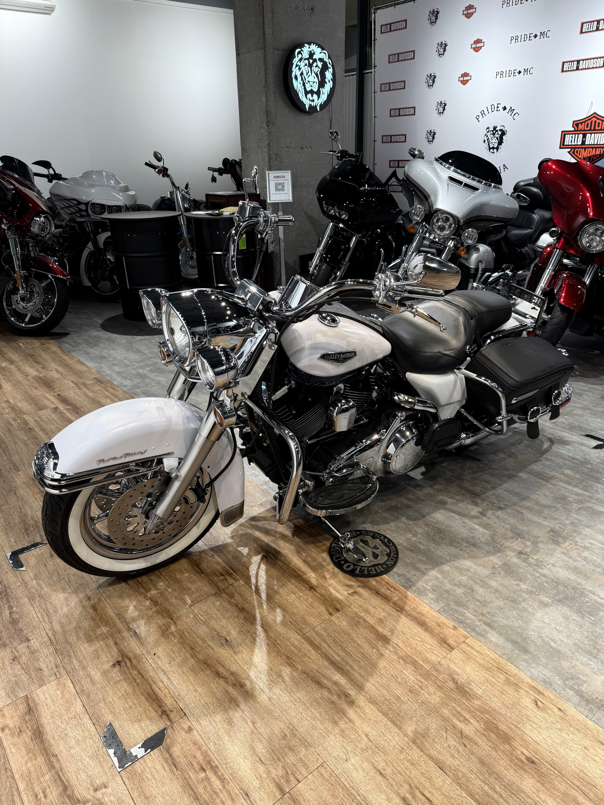 — красивая белоснежная версия Rоаd Кing в полной комплектации с боковыми кожаными кофрами и удобным большим рулем, с дополнительными фарами и всем необходимым для поездок по городу и путешествий;